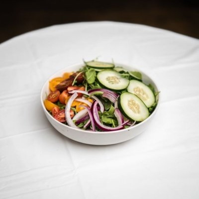 Tomato, cucumber, and red onion with homemade balsamic dressing